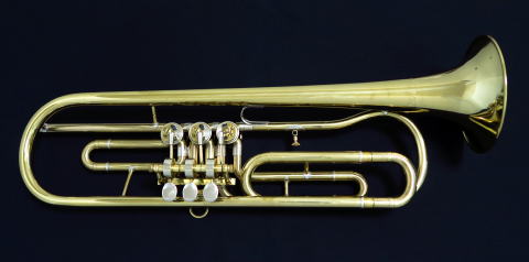 チェコ製で古い楽器のため、スライドの動きが若干悪いですが、演奏には十分使用出来る対応です。